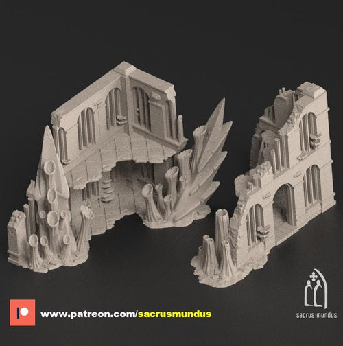 2 Story Ruins | Tulipa, The Infested World. 3d Printing Designs Bundle. Alien Bio Swarm, Hive, Scifi Ruins. Terrain and Scenery for Wargames